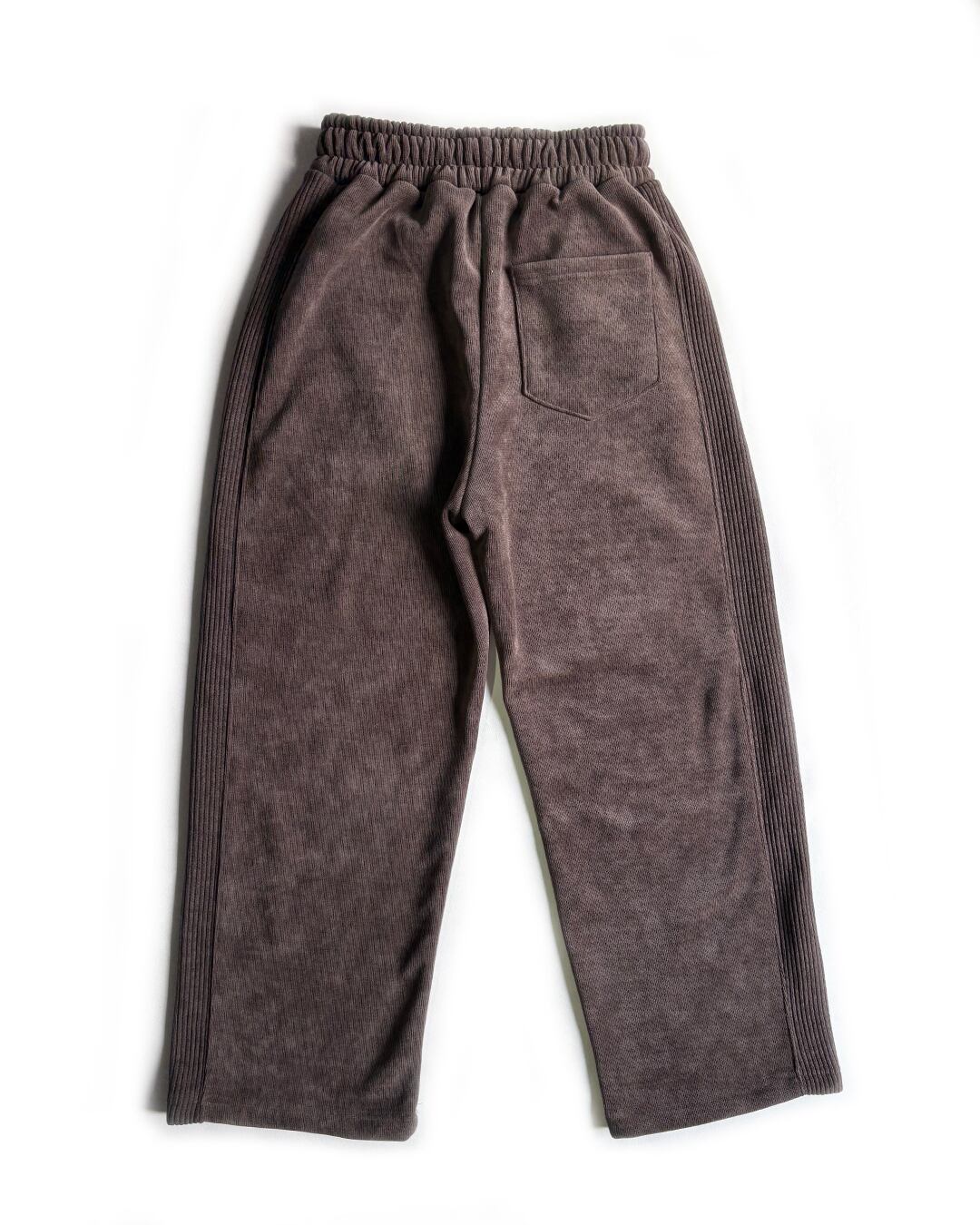 肌触りが良く、保温性の高い裏地起毛のベロア素材を使用したベロア トラック パンツです。