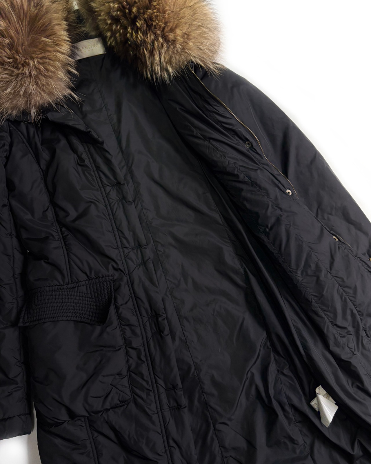 [USED] " VALENTINO ヴァレンティノ " リアルファー ナイロン ロング コート