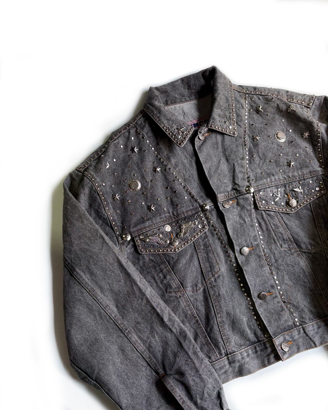 [USED]80's“ PENCE ペンス " スタッズ 装飾 ブラック デニム ジャケット